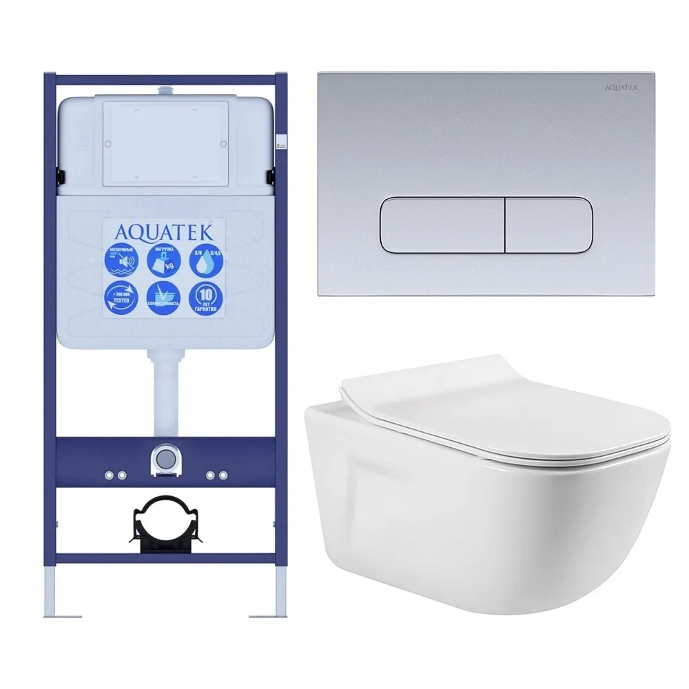 Комплект SET AQUATEK ДИВА-014 4в1 унитаз с инсталляцией кнопкой и сиденьем микролифт купить