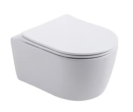 - AQ1106-00 ЕВРОПА Унитаз подвесной безободковый 490*360*250мм, тонкое сиденье с механизмом плавного закрывания, крепеж
