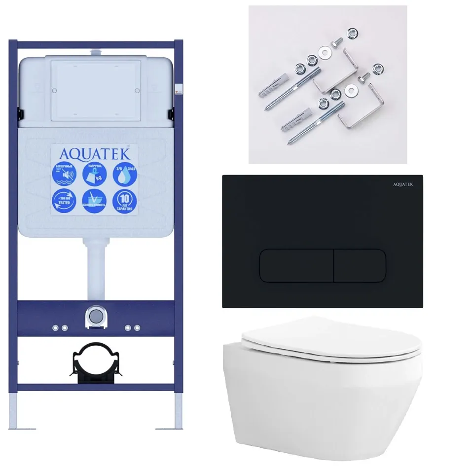 Комплект SET AQUATEK ЛЕЯ Т-017 4в1 унитаз с инсталляцией, кнопкой и сиденьем купить