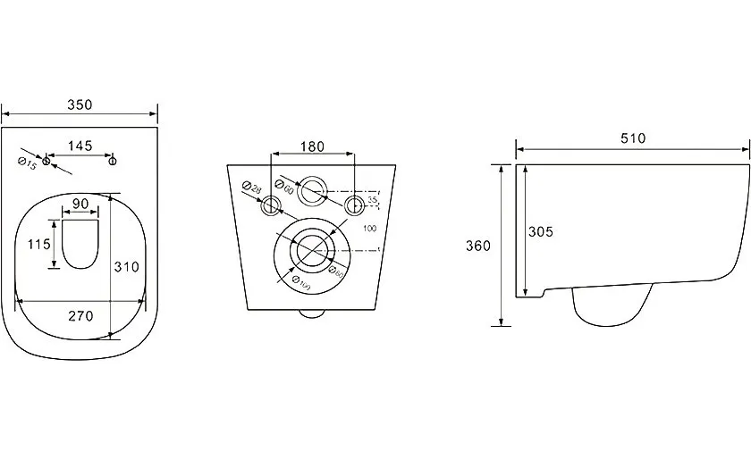 - Чаша унитаза безободковая