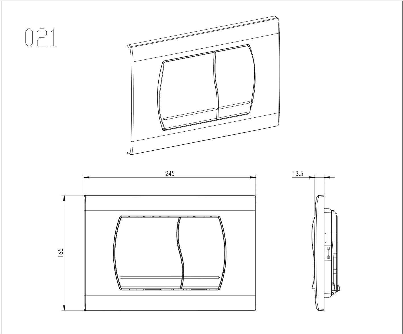 Уплотнительные кольца и мембраны смывного механизма выполнены из силикона, менее подвержены деформации и имеют увеличенный срок службы. Сливная арматура рассчитана на 200 000 циклов использования. Сервисное обслуживание смывного бачка осуществляется через ревизионное окошко, расположенное за клавишей смыва. Регулируемый двойной слив позволяет экономить воду (3/6 л и 4,5/6 л). Латунный клапан бачка обеспечивает надежное перекрывание воды.