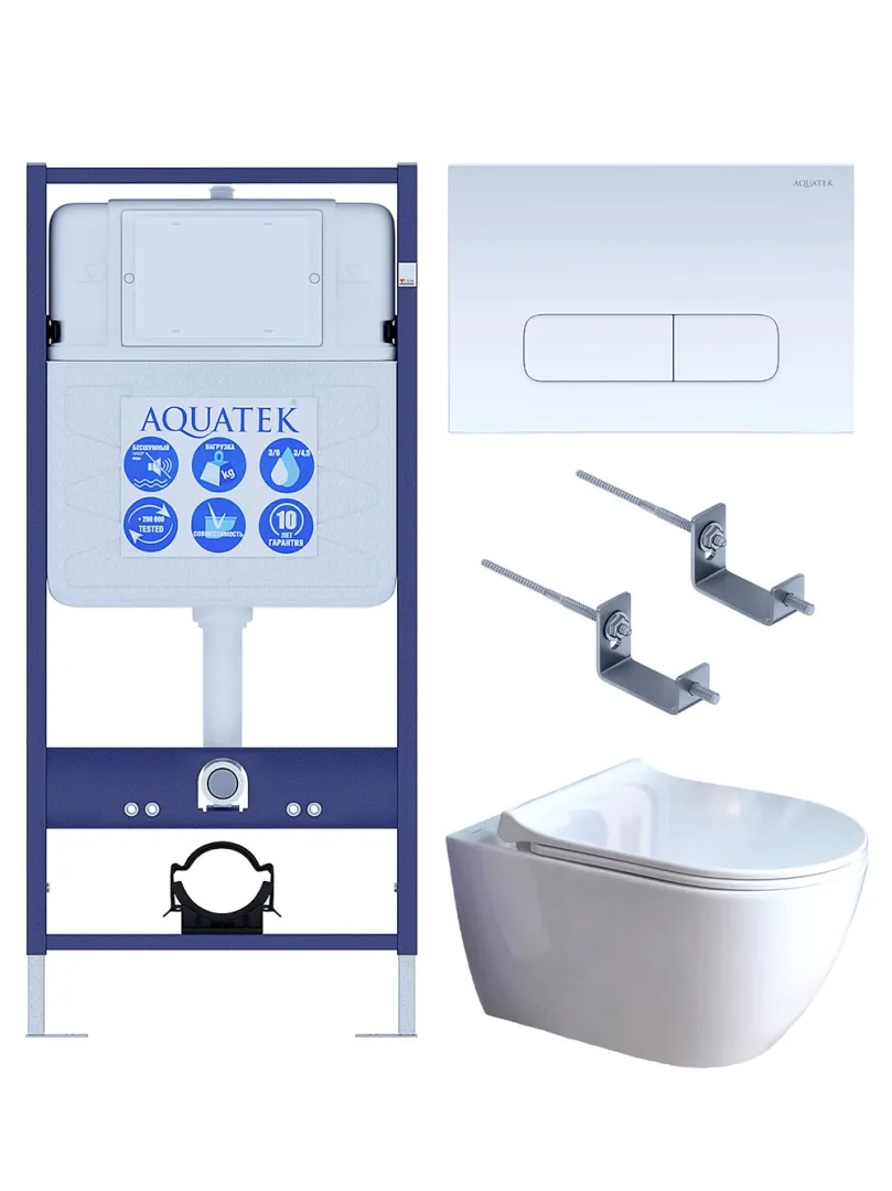 Комплект SET AQUATEK ПОЛАРИС-01-013 4в1 унитаз с инсталляцией кнопкой и сиденьем микролифт купить