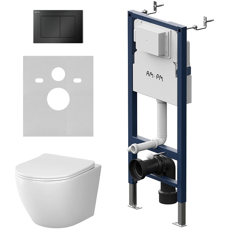 Комплект унитаза с инсталляцией AM.PM Like IS90238.801900 с сиденьем Микролифт и Черной матовой клавишей смываКомплект унитаза с инсталляцией AM.PM Like IS90238.801900.
