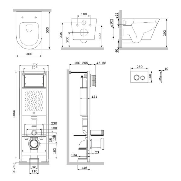 Максимально полный комплект поставки, включающий все необходимые крепления, патрубки, звукоизолирующую прокладку. Экономия пространства благодаря узкой раме – 352 мм шириной. Подходит даже для самых малогабаритных ванных комнат. Заливной клапан с низким уровнем шума - Класс II, согласно европейского стандарта EN 14124.