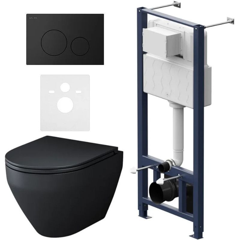 Комплект унитаза с инсталляцией AM.PM Spirit V2.0 FlashClean IS49038.701700MB с сиденьем Микролифт и Черной матовой клавишей смыва купить