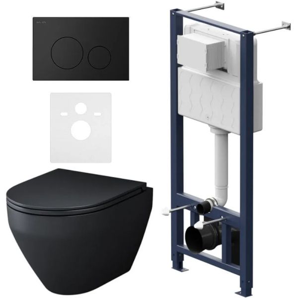 Комплект унитаза с инсталляцией AM.PM Spirit V2.0 FlashClean IS49038.701700MB с сиденьем Микролифт и Черной матовой клавишей смываПолностью готовый к установке комплект: система инсталляции с клавишей, подвесной унитаз сиденьем. Не разборная рама из стального профиля выдерживает нагрузку до 400 кг. Полностью изолированный бачок с качественной двухрежимной смывной арматурой - комфортное использование благодаря низкому уровню шума - менее 20 Дб. Укомплектован пневматической клавишей в цвете никель матовый. В комплекте все необходимые патрубки и крепления, а также прокладка между унитазом и стеной - звукоизоляция. Выверенный геометрический дизайн унитаза Spirit V2.0 - идеально ровные поверхности с четкими гранями, - отмечен премиями iF Design и Good Design. FlashClean - новое поколение безободковых унитазов без использования пластика: 100% гигиеничности, 0% брызг. Компактное дизайнерское решение: идеально впишется в санузел любого размера благодаря проекции 49 см. Полностью скрытые крепления и скрытый фановый выход обеспечат эстетическую чистоту дизайна и лёгкость в уходе за керамикой. В комплекте быстросъемное сиденье из дюропласта с механизмом плавного закрывания. Материал сиденья дюропласт, устойчивый к появлению царапин, в сочетании с креплениями из нержавеющей гарантируют долговечность сиденья. Механизм плавного опускания, рассчитанный на 100 000 закрываний, и быстрого снятия - комфорт в использовании и легкость в уходе за сиденьем и керамикой.