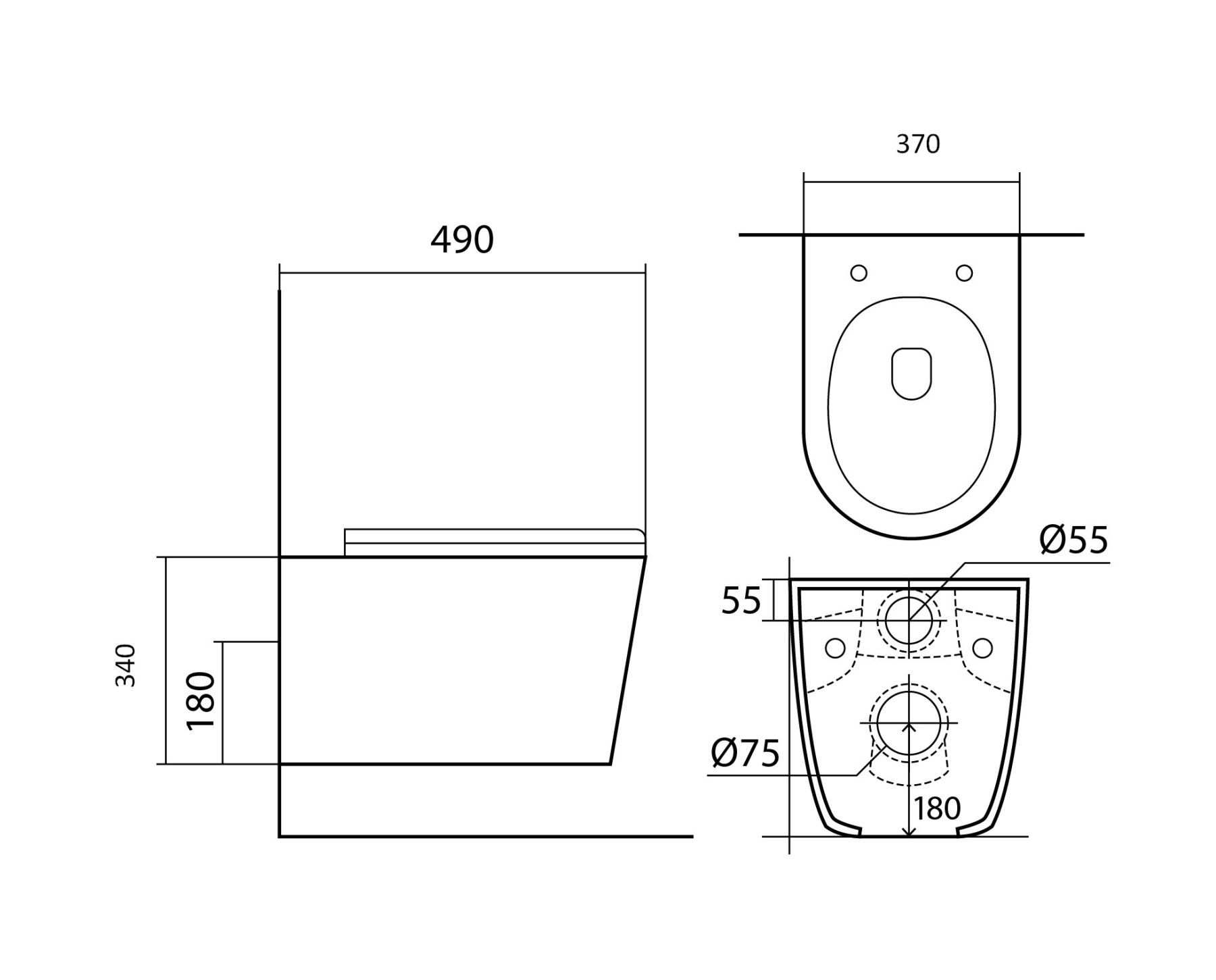 • Чаша унитаза безободковая 490*360*320