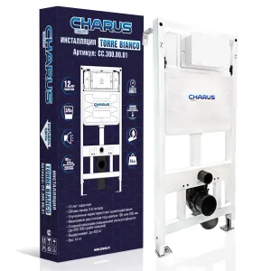 Комплект унитаза с инсталляцией CHARUS SET.114W.11.3 клавишей смыва белаяИнсталляция с бачком для подвесного унитаза CHARUS TM — универсальная система от опытного российского производителя. По качеству и функциональности продукция ни в чем не уступает европейским брендам. Срок эксплуатации товара — более 25 лет. Гарантия на конструкцию действует 12 лет с момента покупки. Гарантия на поставку запасных частей — 15 лет. В течение этого времени каждый покупатель может обратиться за бесплатным гарантийным обслуживанием.• Инсталляция совместима с унитазами любых брендов.• Большой ревизионный люк упрощает монтаж внутренних элементов, а лазерная отметка уровня 1 м до чистого пола гарантирует корректную установку конструкции.• Двухкнопочная система настройки слива позволяет с легкостью управлять объемом сливаемой воды и экономить до 8 литров в день. Смывной бачок скрытого монтажа обеспечивает максимально тихий слив, а значит, инсталляция практически бесшумна.• Контроль качества продукции осуществляется на всех стадиях производства: специалисты Чарус тщательно проверяют каждую партию.Материал — сталь и пластик, нижнее основание рамного каркаса оцинковано. В местах крепления керамики толщина изделия увеличена до 3 мм. Благодаря повышенной прочности каждого элемента инсталляция выдерживает до 400 кг.