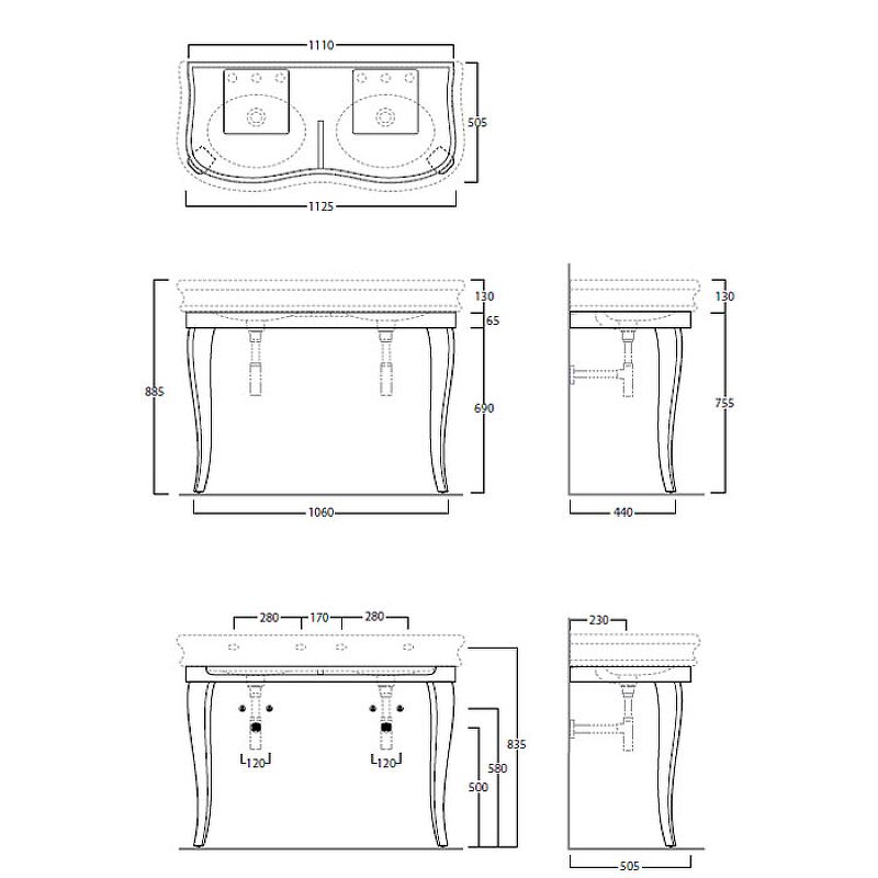 Консоль под раковину Simas Lante 120 LAM120 bi Белая купить
