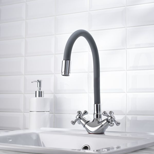 Классический двуручковый корпус смесителя для кухни удобен и эффективен в использовании.