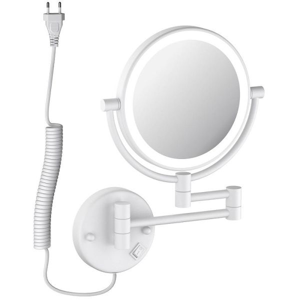 Косметическое зеркало Timo Saona 13376/16, 25 см, с подсветкой, 5х увеличение, цвет белый матовый