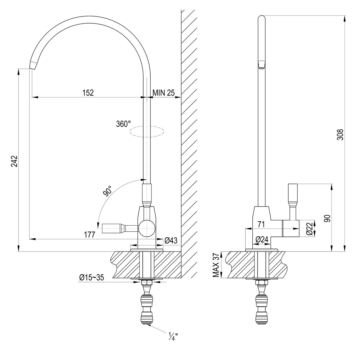 - Переходник для подключения шланга от фильтра питьевой воды ¼”