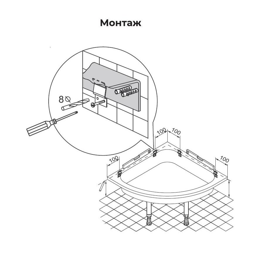 Изделие не является самостоятельной опорой для душевого поддона!