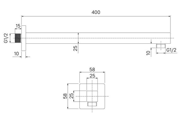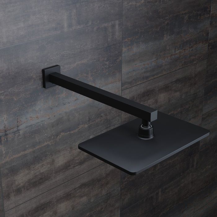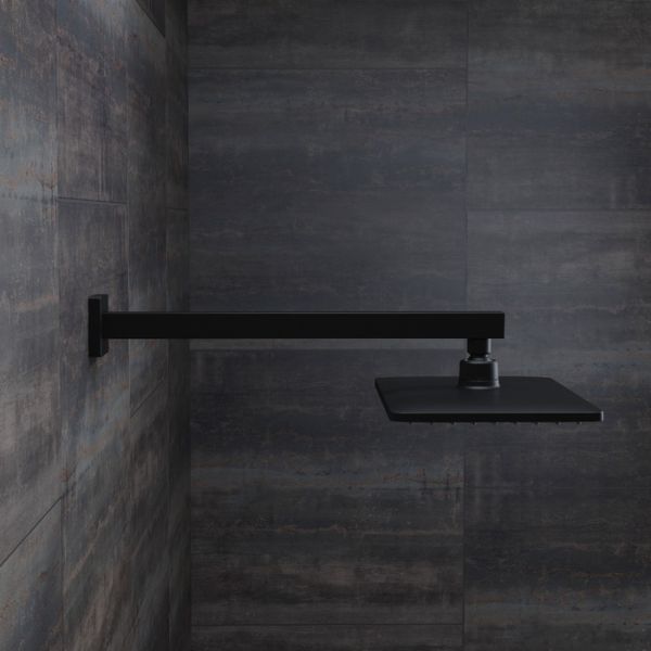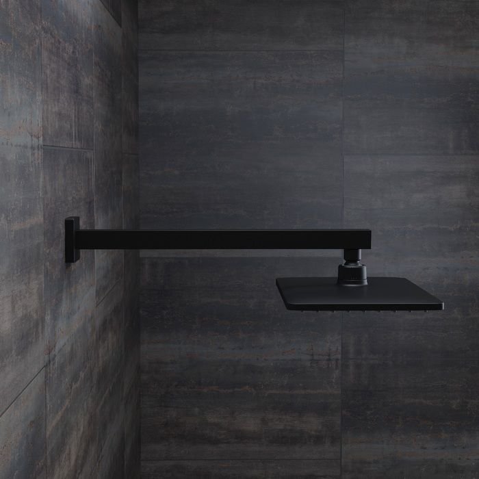 Черный матовый настенный кронштейн для верхней душевой лейки. Квадратное сечение, длина 400 мм. Совместим с любыми черными верхними лейками IDDIS® с подключением G 1/2, а также с лейками других производителей.