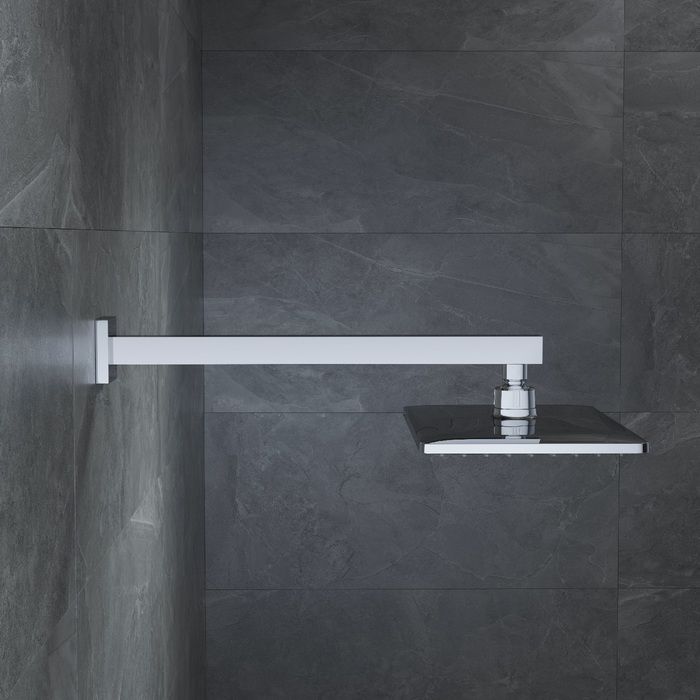 Хромированный настенный кронштейн для верхней душевой лейки. Квадратное сечение, длина 400 мм. Совместим с любыми хромированными верхними лейками IDDIS® с подключением G 1/2, а также с лейками других производителей.