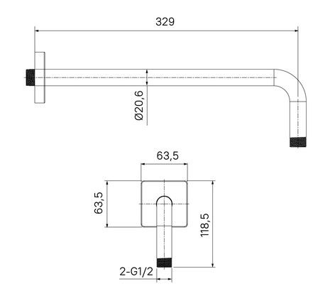 Хромированный Г-образный настенный кронштейн для верхней душевой лейки. Круглое сечение, длина 329 мм. Совместим с любыми хромированными верхними лейками IDDIS® с подключением G 1/2, а также с лейками других производителей.