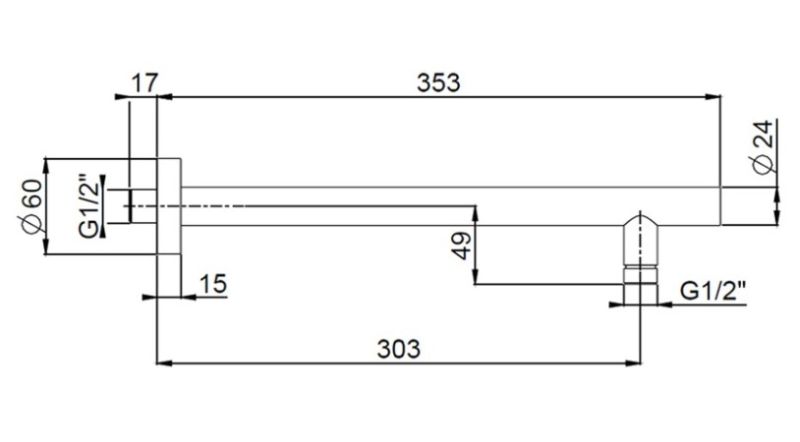 Потолочный держатель для верхнего душа круглой формы обеспечивает надежную фиксацию и комфортное использование. Длина кронштейна 20см, рассеиватель будет расположен практически под потолком, что позволяет расслабиться и насладиться тропическим дождем.