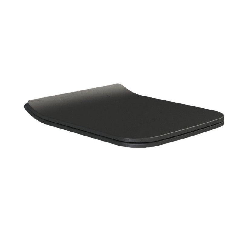 Черная матовая тонкая крышка-сиденье с плавным опусканием (микролифт), быстросъемная.