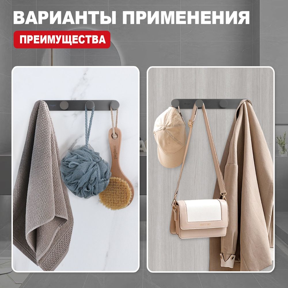Держатель полотенец в ванную, четыре крючка на планке. Крепление в комплекте.