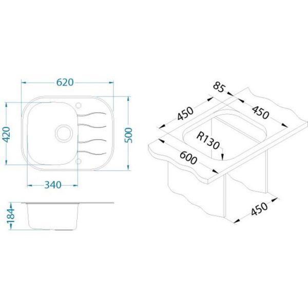 Кухонная мойка Alveus 1123811 Wave 10 черная 62x50Мойка WAVE UP 10 черный 620X5001X, в компл.с сиф.1123351