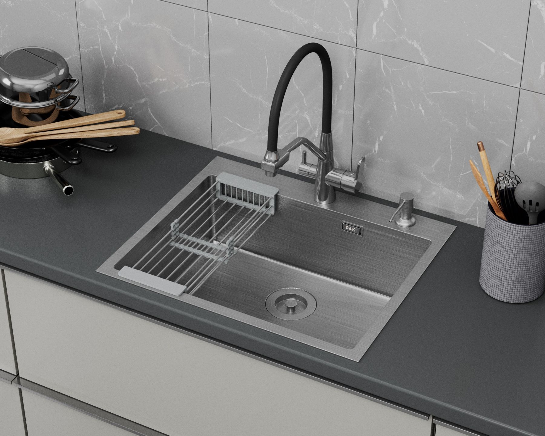 Стальные мойки DQ из нержавеющей стали гармонично впишутся в любой интерьер современной кухни.