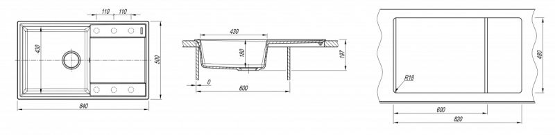 - Габариты нетто ( ДхШхВ) 840х500х197 мм