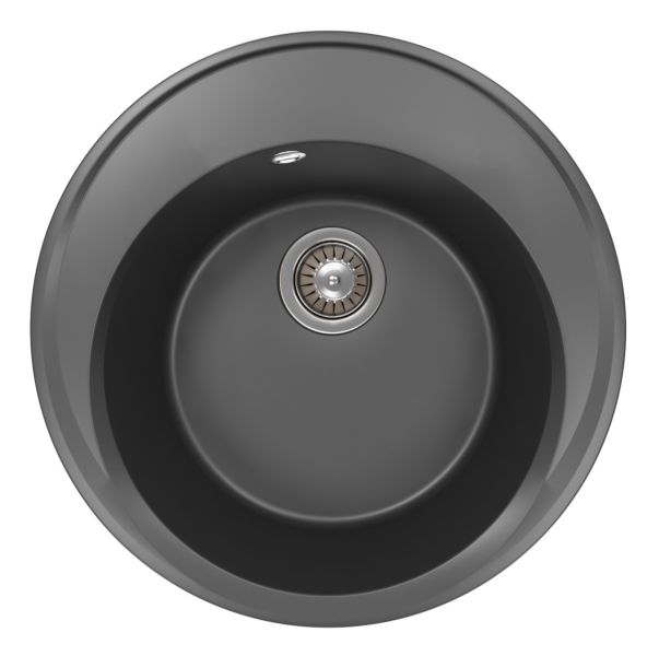 Круглая мойка с большой чашей для кухонного шкафа 45 смМатериал — кварцевый композитПредусмотрены дополнительные отверстия для установки аксессуаровГабариты нетто ( ДхШхВ) 510х510х217 мм