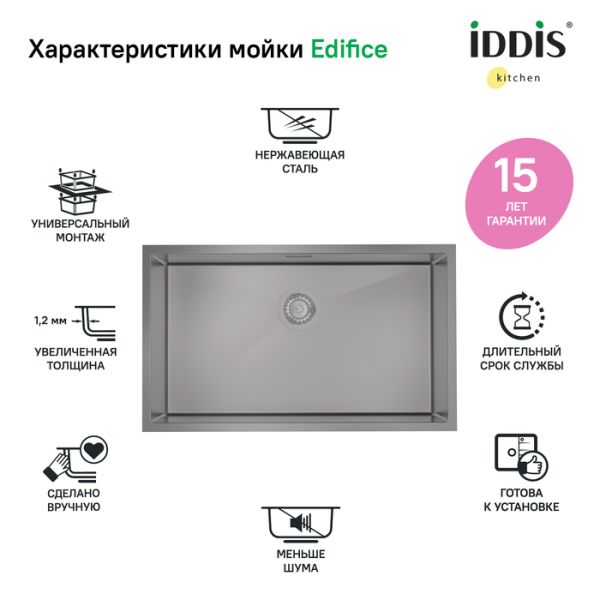 Кухонная мойка IDDIS Edifice EDI74G0i77 74см графит Кухонная мойка IDDIS Edifice EDI74G0i77 74см графит Казань 46190.00 {old_price} IDDIS
