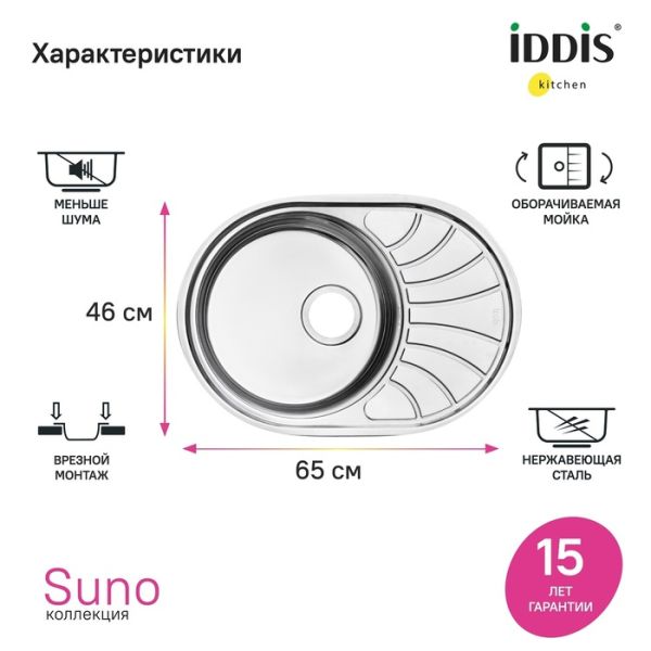 Кухонная мойка IDDIS Suno SUN65SDi77 65см сталь Кухонная мойка IDDIS Suno SUN65SDi77 65см сталь Казань 6300.40 8290.00 IDDIS