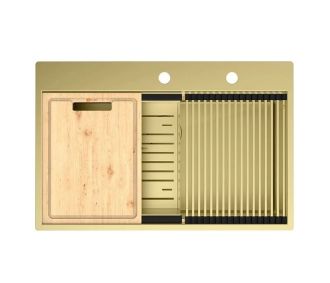 Мойка в комплекте с аксессуарами включает ролл-мат, коландер и разделочную доску, а ее ступенчатая форма позволяет устанавливать эти предметы прямо внутри чаши.