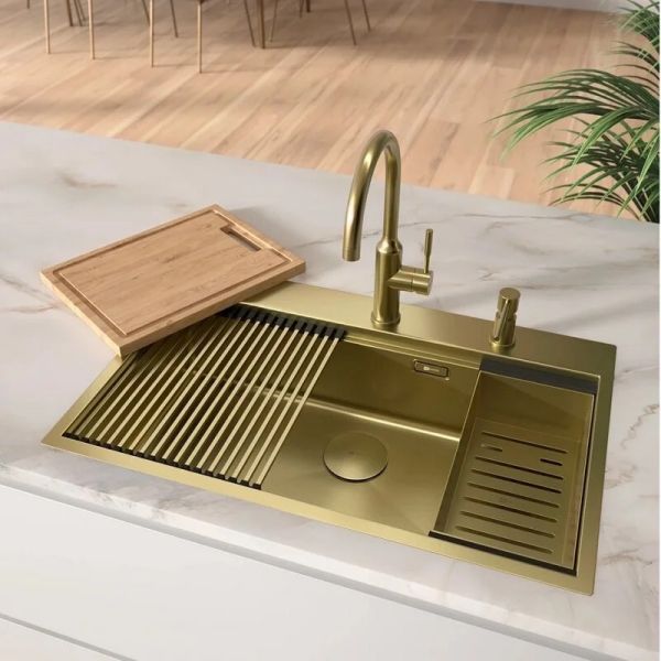 Устойчивость к коррозии. Нержавеющая сталь SUS 304 характеризуется наличием 18% хрома и 10% никеля, что гарантирует ей высочайшую устойчивость к коррозии. PVD-покрытие защищает мойку от воздействия влаги и агрессивных веществ, что особенно важно для кухонной мойки.