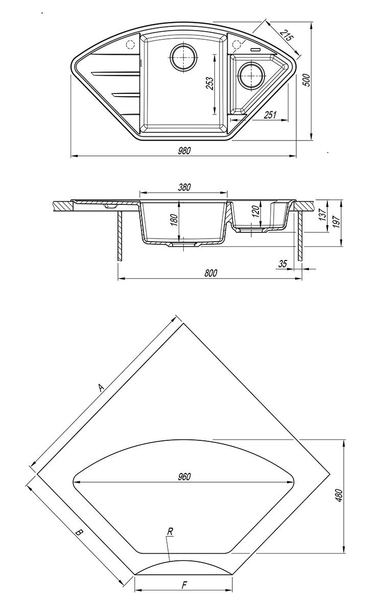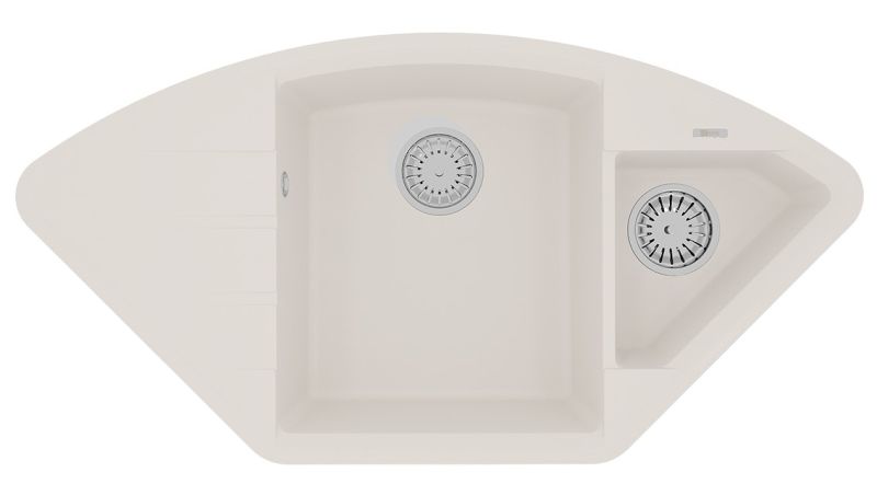 Благодаря своей форме, мойка подойдет как для кухонного гарнитура с подводкой воды в одном из углов помещения, так и для стандартного размещения в прямом шкафу. Эргономичная мойка с дополнительной чашей, которую можно использовать для мытья овощей и фруктов или для размораживания продуктов.