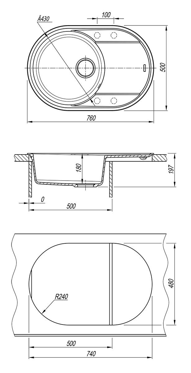 Универсальная версия овальной формы мойки с оборачиваемым крылом позволяет использовать различные пространства кухни.
