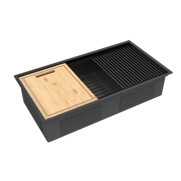 Кухонная мойка Lemark Tabaga 820 9932136 в комплекте с разделочной доской ролл-матом и коландером чёрный матовый купить