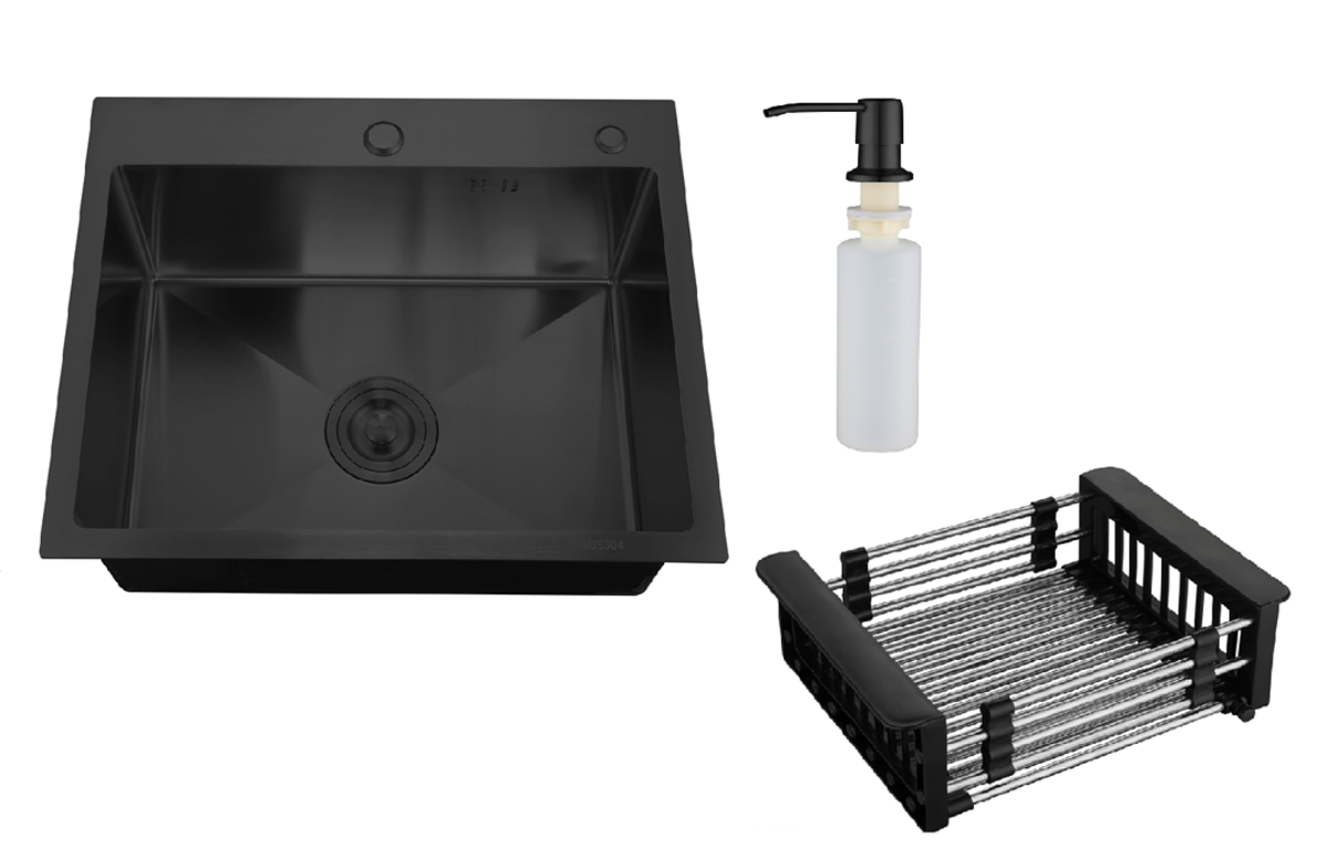 Кухонная мойка РМС MR-5050BL с корзиной и дозатором воронёная сталь купить