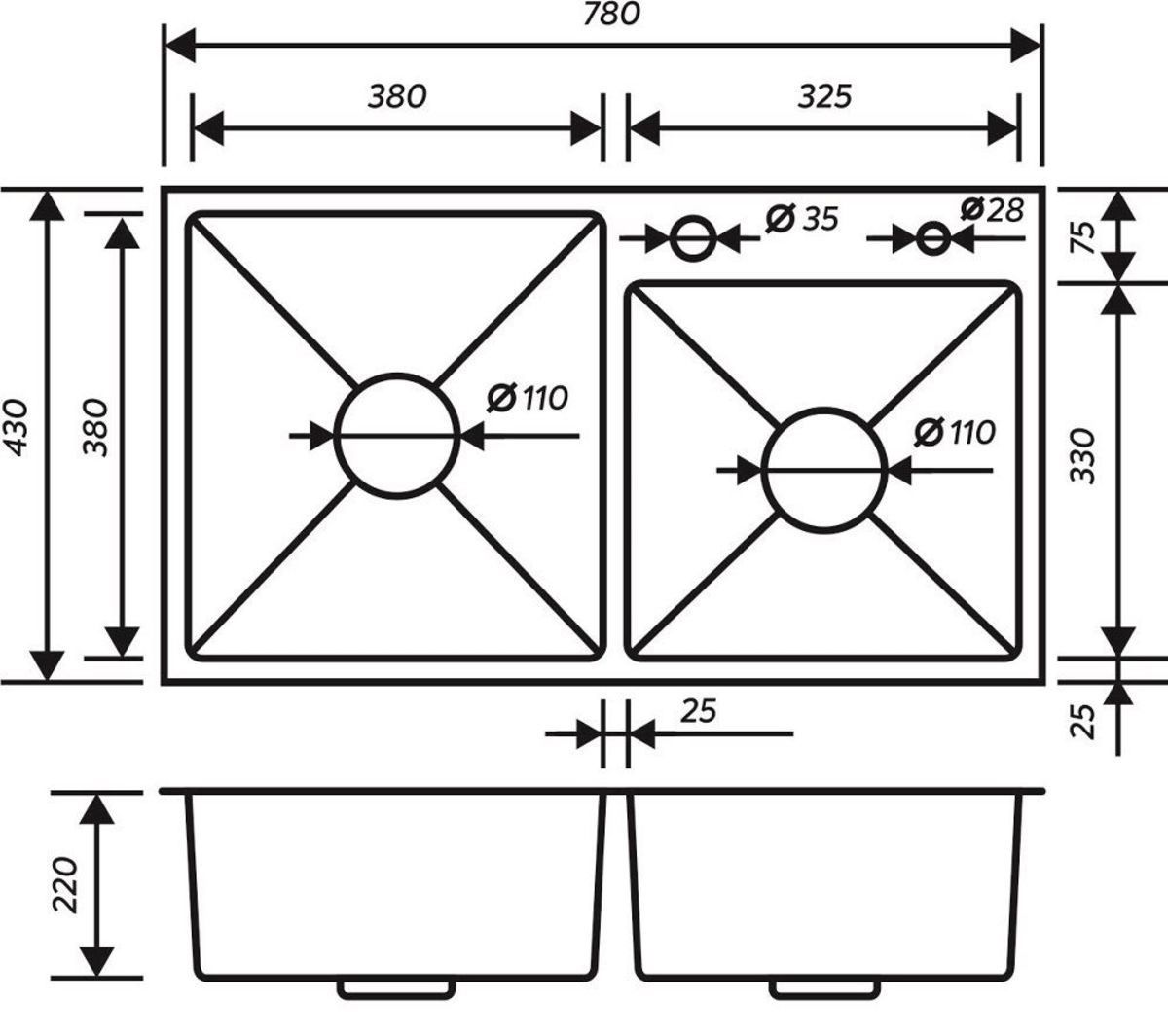 Кухонная мойка РМС MR-7843 с корзиной и дозатором нержавеющая сталь купить