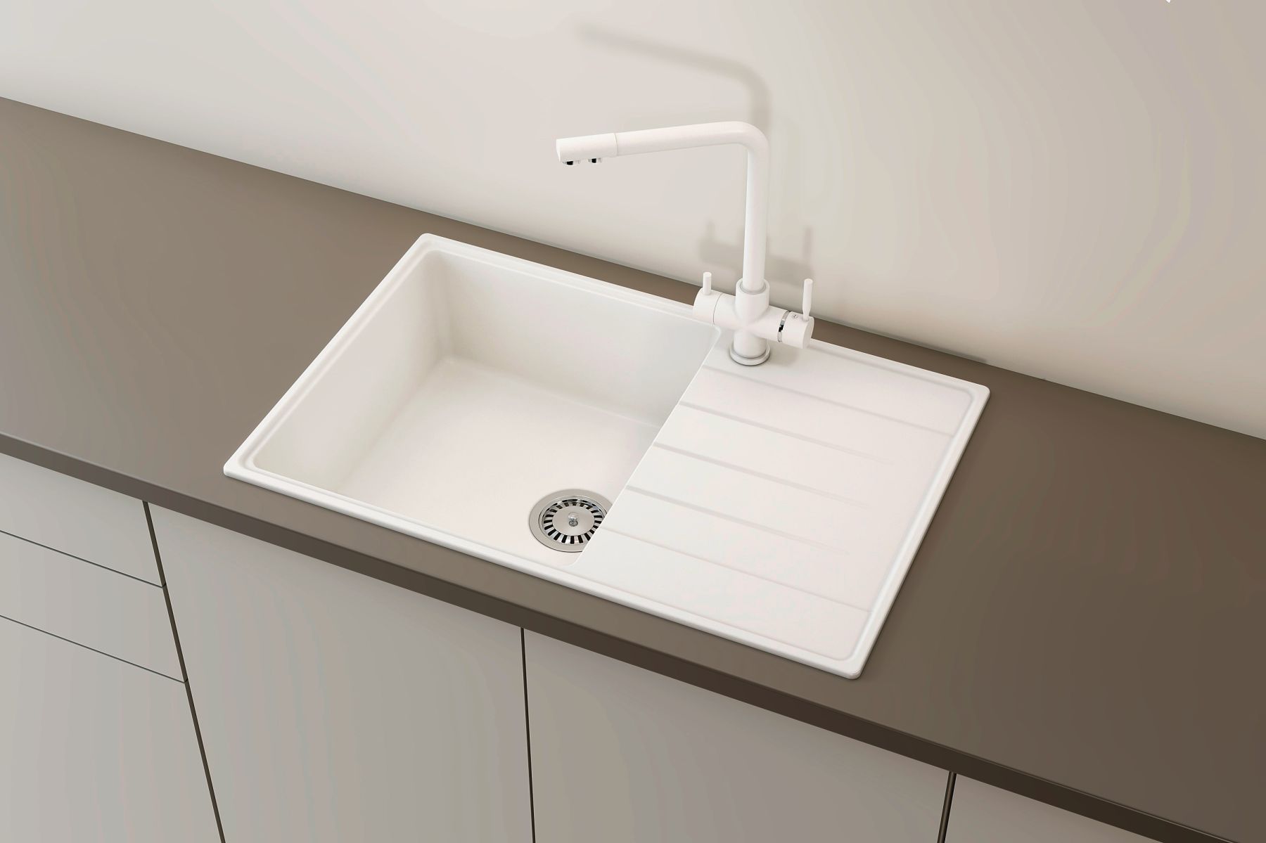 ULGRAN Quartz Prima 780 – классическая односекционная прямоугольная кухонная мойка с большой чашей и увеличенным крылом, изготовленная на современном автоматизированном оборудовании из высококачественных кварцевых композитов по инжекционной технологии (литье под давлением). Кварцевый композит является поистине инновационным материалом в производстве кухонных моек! Он сочетает в себе такие неоспоримые преимущества как повышенная влагостойкость и термостойкость, возможность придать мойке при изготовлении практичный и функциональный дизайн, увеличенное сопротивление внешнему износу, снижение уровня шума при падении струи воды, безусловная гигиеничность и простота в уходе, а также сравнительно малый вес при высокой прочности.