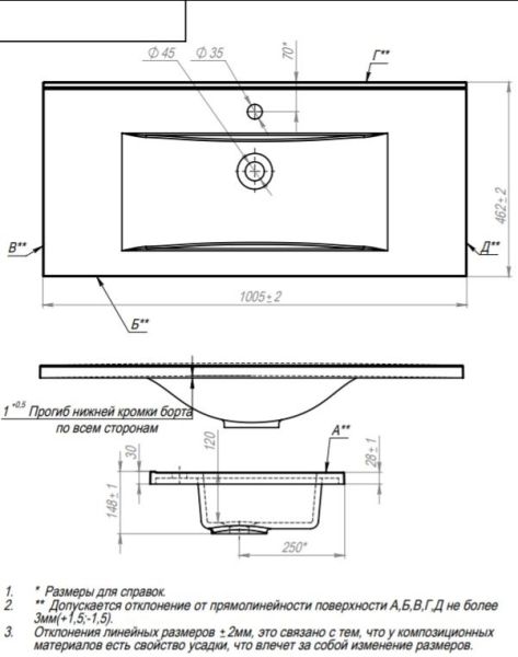 Мебельная раковина Andrea SV 100см белый 00000010946 купить