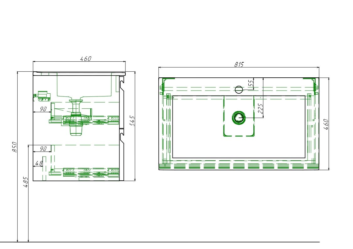 Габариты (ДхШхВ), мм: 810х460х1701 отверстие под смеситель, встроенный канал переливаДля сифона диаметром 1 1/4 x 32 ммМонтаж накладной (на тумбу)Расположение смесителя: по центру