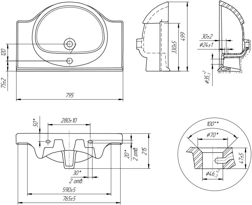 Отверстия под смеситель:1