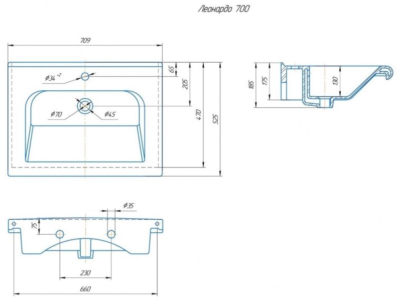 Мебельная раковина Kirovit Леонардо 70 замечательно разместиться в вашей ванной комнате как основа для принятия утренних процедур. Благодаря установке встраиваемой раковины вы получите дополнительную поверхность в виде столешницы, которую можно использовать с пользой.Прямоугольная форма раковины Kirovit Леонардо оптимальных размеров: шириной 70.5 см, глубиной 52 см, высотой 18.5 см, способствует комфорту использования и монтажа. Современный стиль, в котором выполнена раковина Kirovit передается во всех элементах данной модели. Материалом, из которого произведена раковина является фаянс, данный материал отличается максимально гладкой поверхностью, и абсолютной гигиениченостью.Бренд Kirovit, родиной которого, является Россия, выпускает раковины высочайшего качества с использованием безвредных для здоровья материалов. Мебельная раковина Kirovit Леонардо 70 правильный выбор в ремонте ванной комнаты как небольшой, так и просторной.