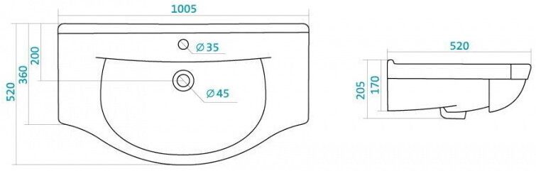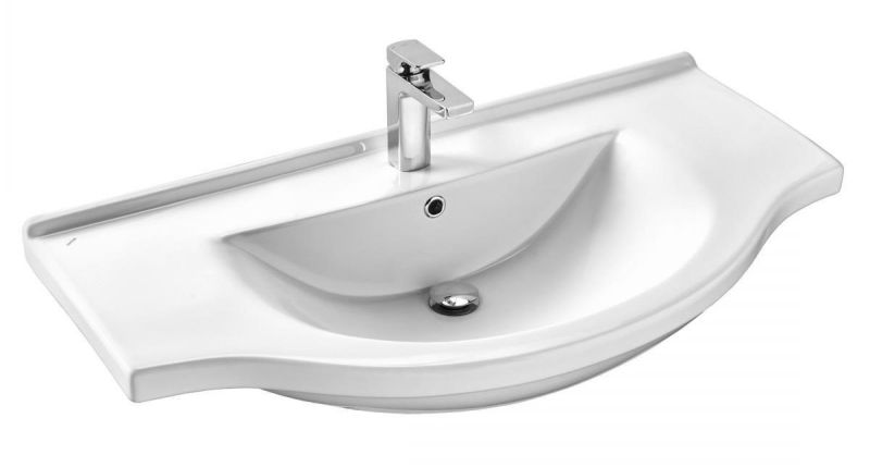 Керамическая раковина Santek ЭЛЬБРУС 100 отличается удобной округлой формой, высоким качеством исполнения, практичностью и функциональностью. Дополнительные бортики обеспечивают место для размещения необходимых мелочей, а встраиваемая в мебельную тумбу конструкция создает дополнительное пространство для хранения.