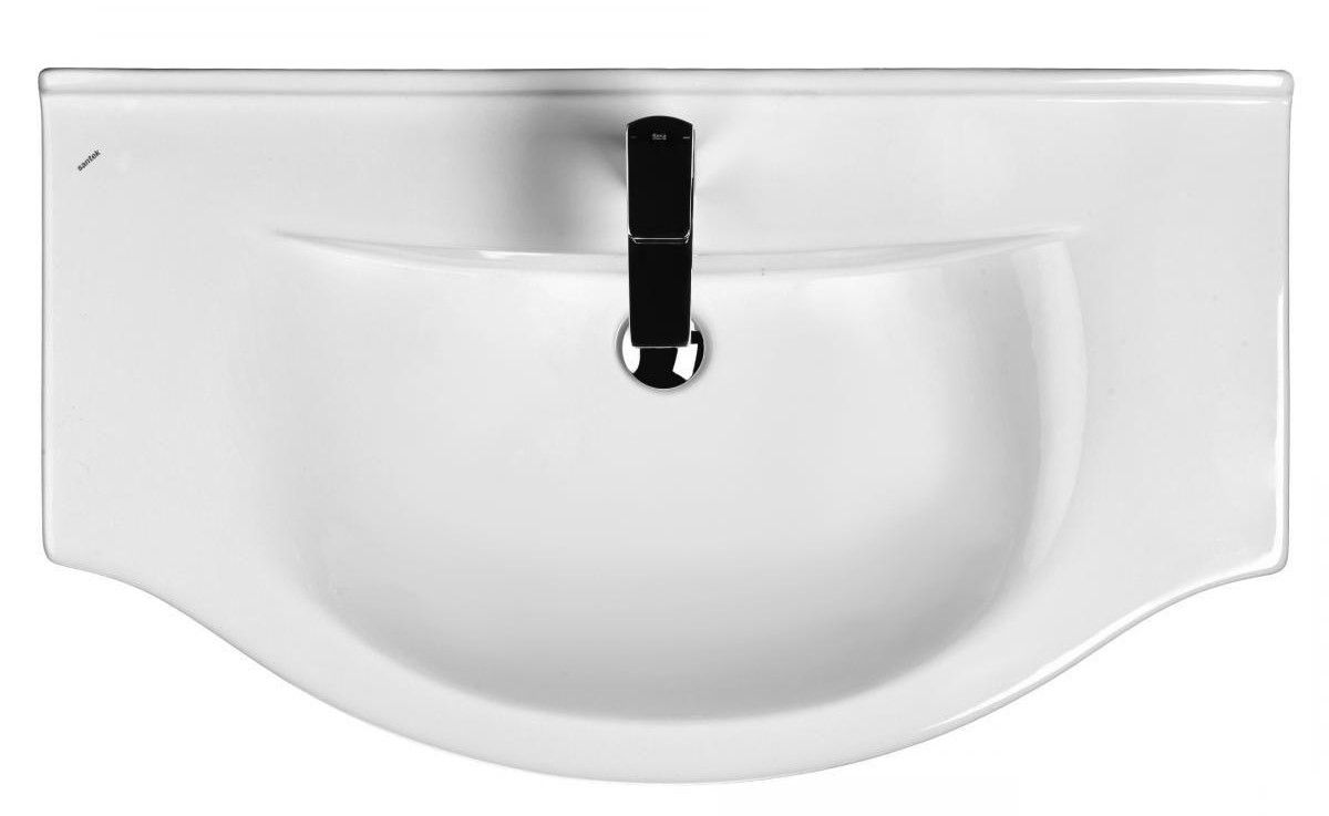 Керамическая раковина Santek ЭЛЬБРУС 90 отличается удобной округлой формой, высоким качеством исполнения, практичностью и функциональностью. Дополнительные бортики обеспечивают место для размещения необходимых мелочей, а встраиваемая в мебельную тумбу конструкция создает дополнительное пространство для хранения.