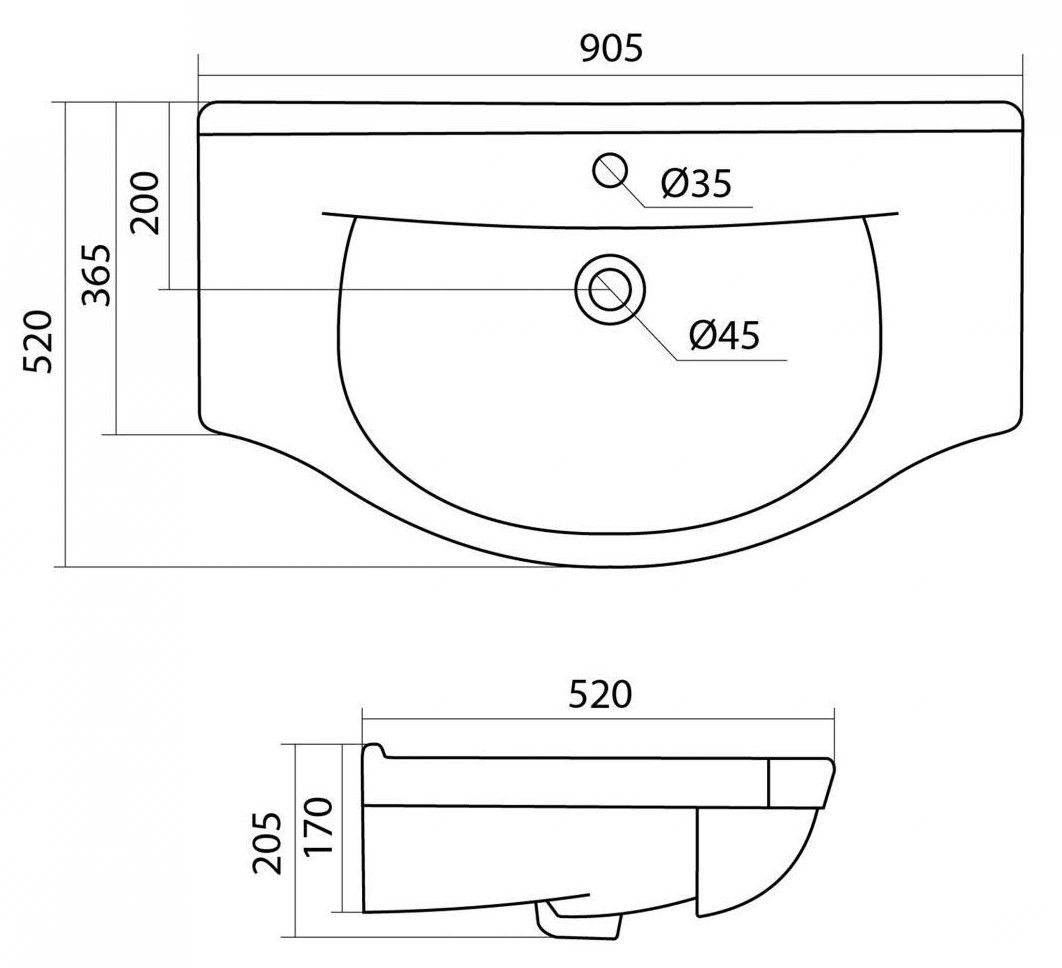 Универсальный дизайн раковины Santek ЭЛЬБРУС 90