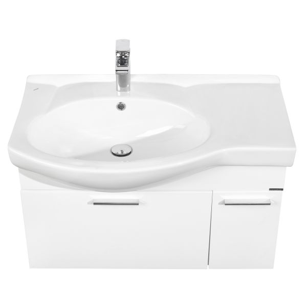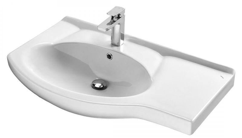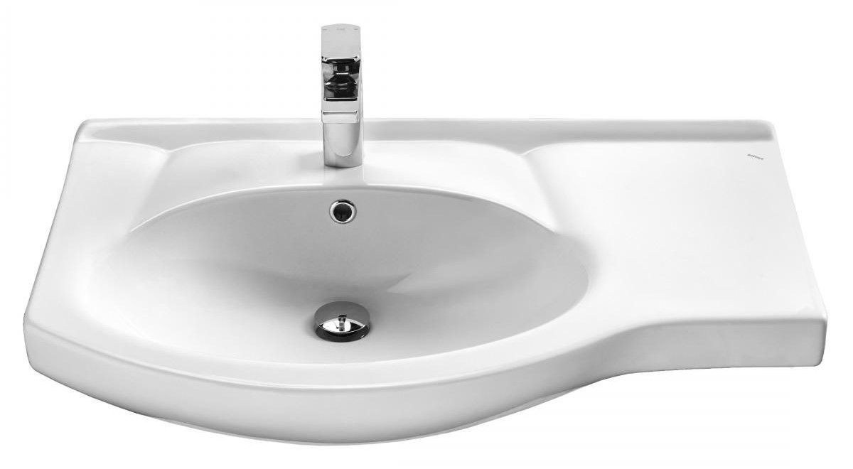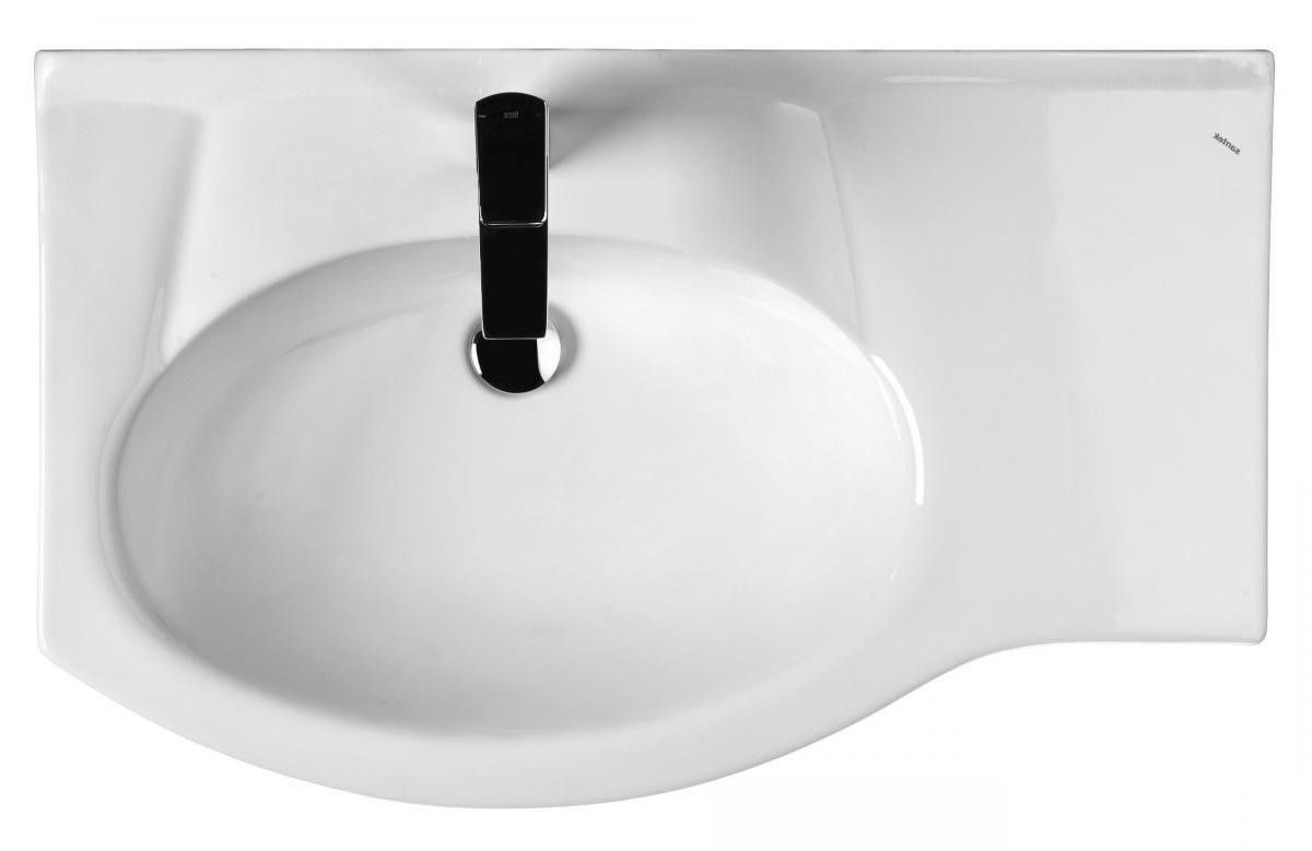 Керамическая раковина Santek КОРАЛЛ 82 отличается нестандартной формой с крылом, сверкающей белизной, высоким качеством исполнения, практичностью и функциональностью. Крыло справа обеспечивает больше места для размещения необходимых мелочей, а встраиваемая в мебельную тумбу конструкция создает дополнительное пространство для хранения.
