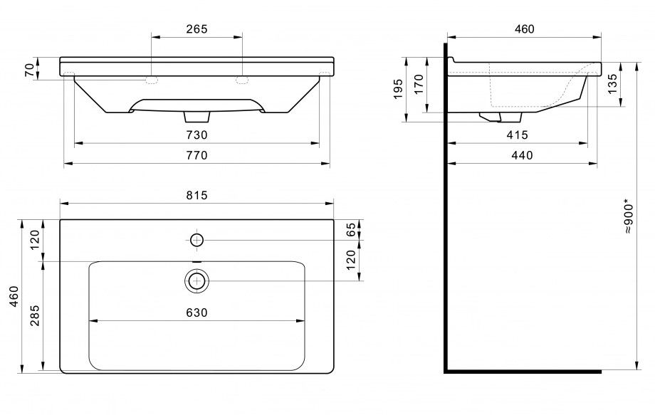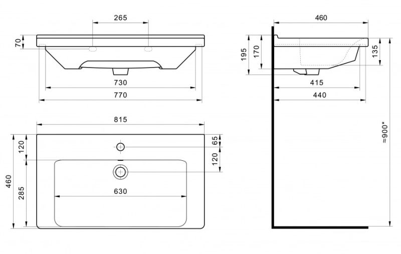 - Прямоугольная форма с широкой чашей