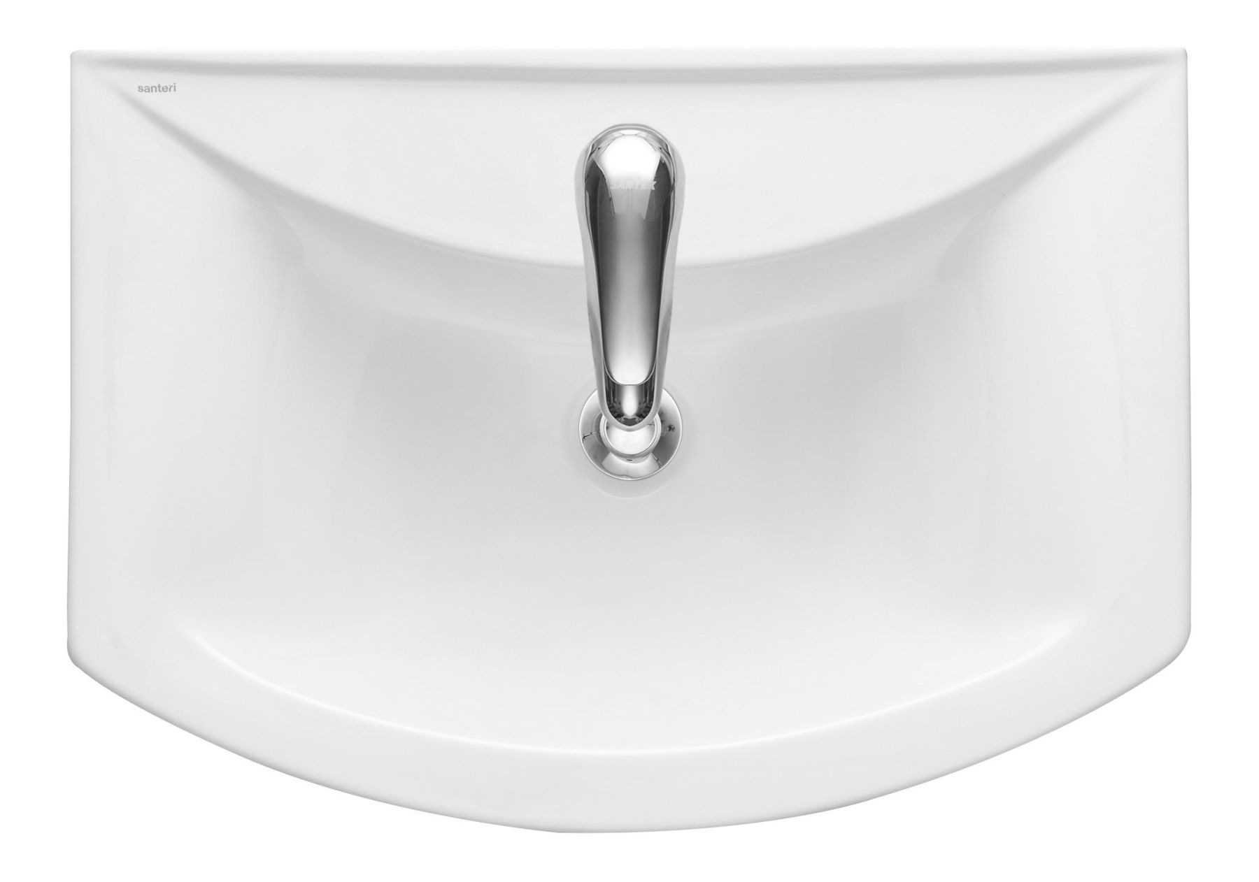 Практичная и удобная раковина Santeri Грация 60 оптимально подходит для оборудования ванной комнаты: дополнительные бортики обеспечивают место для размещения необходимых мелочей, а встраиваемая в мебельную тумбу конструкция создает дополнительное пространство для хранения.