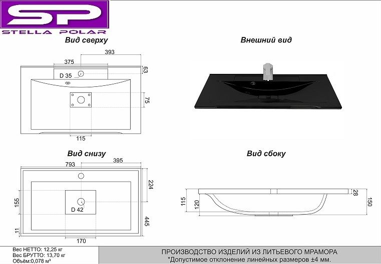 Мебельная раковина Stella Polar Корвет 80см чёрный металлик SP-00000904 Мебельная раковина Stella Polar Корвет 80см чёрный металлик SP-00000904 Казань 7435.89 9657.00 Stella Polar