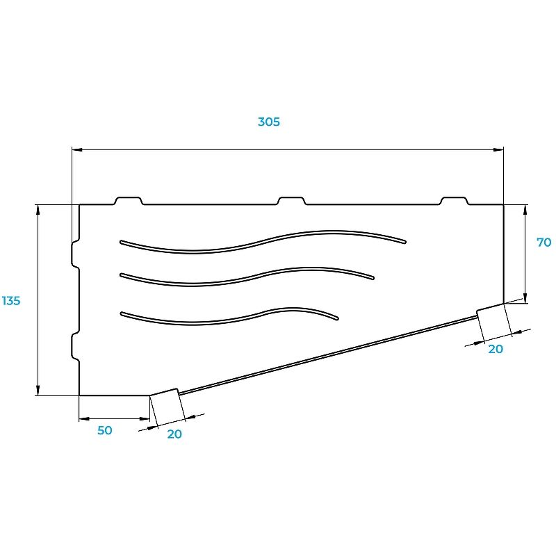 Металлическая полка RGW MT-11B 49279911-04L угловая ЧернаяПолка для душевой зоны RGW MT - современное решение для душевого пространства. Изготовлены из нержавеющей стали AISI 304, прочные, не ржавеют. Форма и размер полки, позволяет достичь максимальной стабильности конструкции и достаточной вместительности душевых принадлежностей, а легкая и быстрая установка в межплиточные швы без сверления плитки выгодно выделяет данное решение. Легкий монтаж без сверления плитки: Полки для душевой зоны, разработанные специально для монтажа после завершения ремонта, т. е. укладки плитки. Легко устанавливаются в любые угловые зоны в помещении, для этого прорезается шов между плитками, далее полочка вклеивается между плиткой на любой бытовой герметик. Полочки для душевой зоны RGW MT идеально подойдут для установки в душевое пространство, или в любую комнату, а так же найдут применение, на кухнях или в других помещениях.