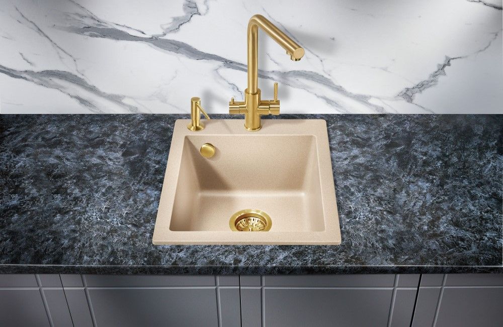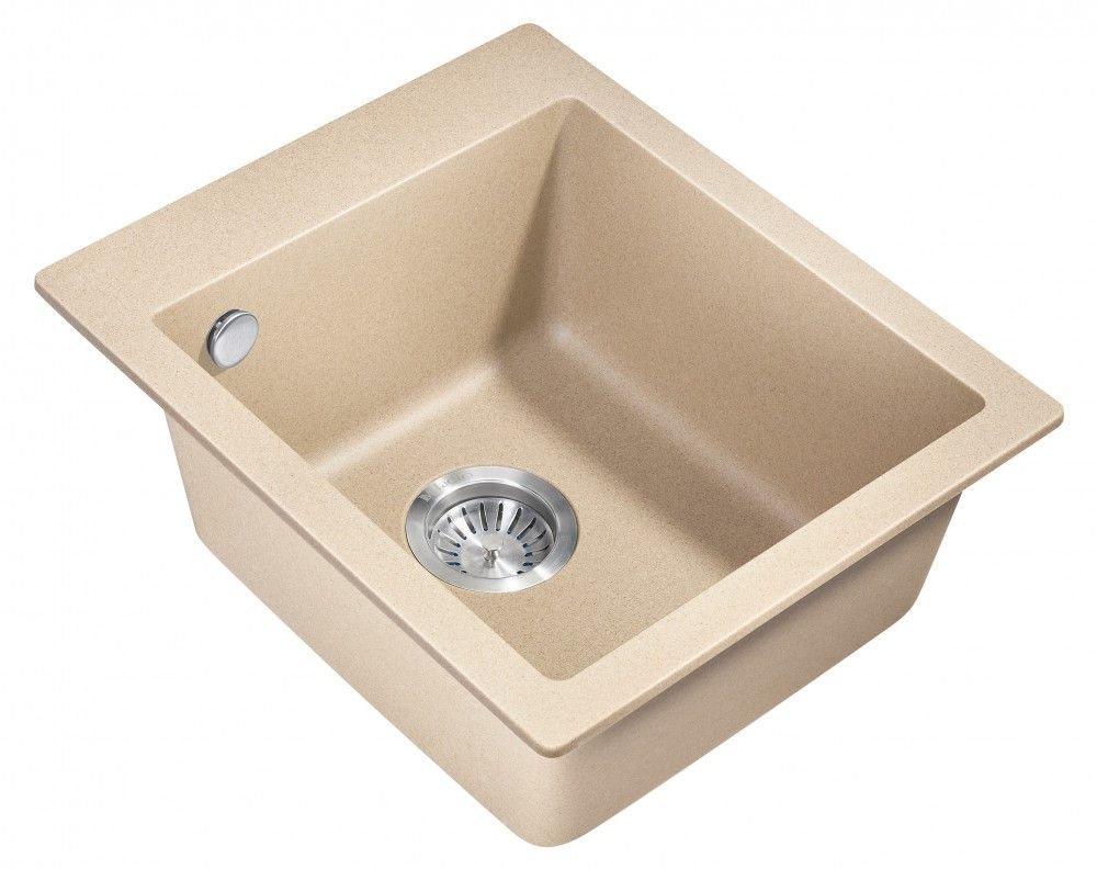Кухонные мойки MILACIO — эталон стиля и качества даже для самых искушенных ценителей дизайнерской сантехники.Каменная врезная прямоугольная мойка для кухни MILACIO Murcia 42 Cuarzo (MC.77044), выполненная в бежевом матовом цвете, воплотила в себе лучшие особенности: безупречный вид, лаконичный дизайн, прочность конструкции и комфортное использование. Раковина изготовлена из высококлассного кварцевого композита — смеси частиц кварца и полиэфирных смол — красивого и современного материала, обладающего уникальной прочностью. Искусственный камень устойчив к любым воздействиям — царапинам, ударам, высоким и низким температурам (не боится кипятка и горячей посуды), бытовой химии, пищевым красителям, свету и загрязнению. Даже спустя годы изделие не потеряет цвет и форму и будет должным образом выполнять свои функции. Кухонная кварцевая мойка достаточно компактна, чтобы лучшим образом использовать пространство в небольшой комнате. Размер компенсируется глубокой чашей квадратной формы — в нее поместятся сразу несколько комплектов посуды. Благодаря правильной геометрии мойки капли не разбрызгиваются в стороны, а специальное водоотталкивающее покрытие не дает воде растекаться по поверхности, что сводит загрязнение к минимуму.При этом уход за раковиной достаточно прост: пятна легко убираются чистящими средствами — без подтеков и разводов.